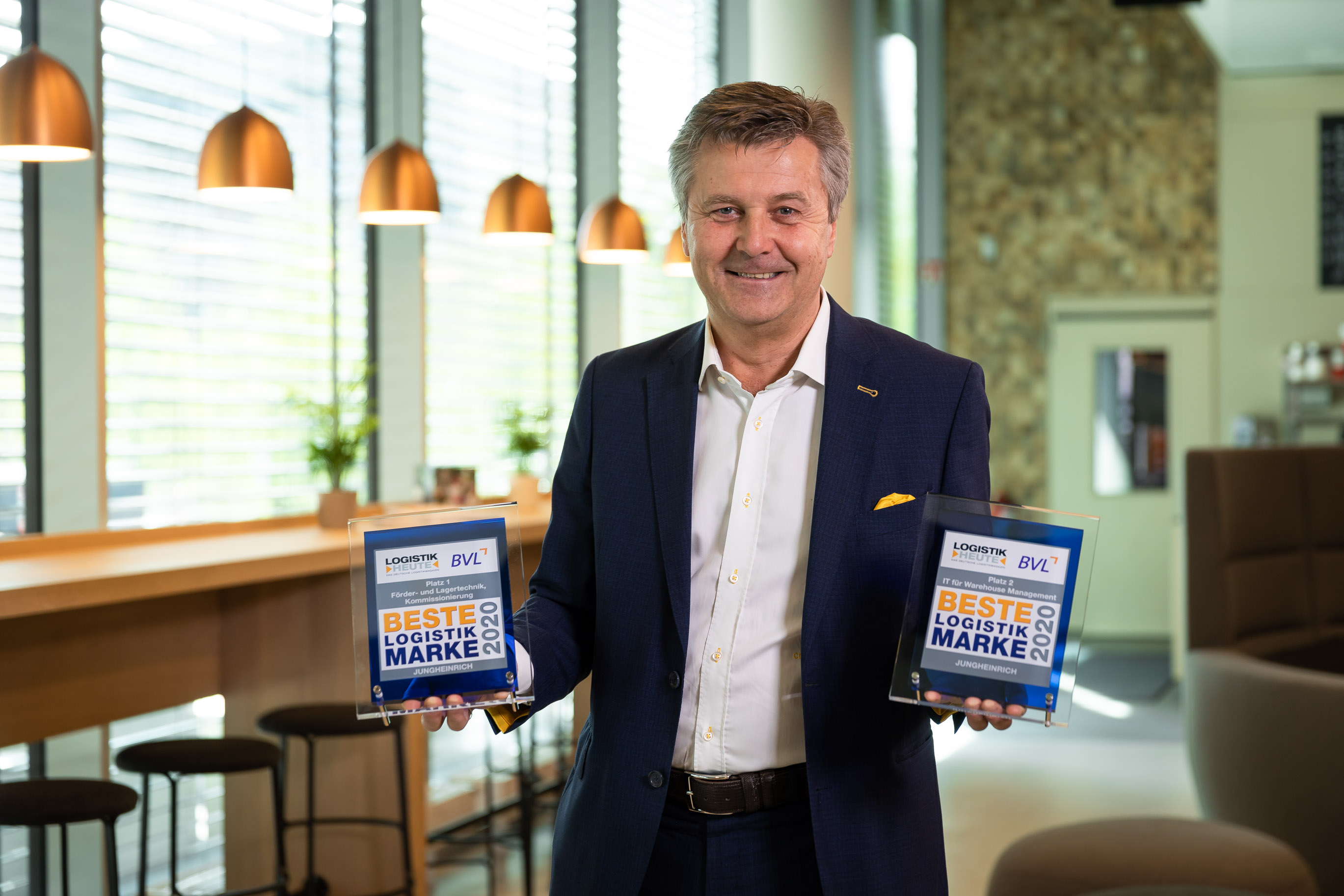 Hamburgo: Jungheinrich es "Beste Logistik Marke 2020” (Mejor Marca Logística). Esta es la cuarta vez consecutiva que el Grupo intralogístico basado en Hamburgo ha sido galardonado con el reconocido premio en la categoría “Tecnología de bodegaje y order picking”. Jungheinrich también se llevó el Segundo lugar en la categoría “TI para Management de Bodega”. Christian Erlach, Miembro de la Junta Directiva de Jungheinrich para Ventas y Marketing, comentó: “Ser premiados como 'Beste Logistik Marke’ por cuarta vez consecutiva es un gran éxito. El hecho de que además fuimos capaces de lograr el segundo lugar en el campo de informática para logística, es confirmación del desarrollo constante de Jungheinrich como proveedor de soluciones integrales para la intralogística. Quién adquiere Jungheinrich tiene la garantía de estar adquiriendo soluciones y productos innovadores. Cumplimos con nuestra promesa y vamos más allá. De este modo apoyamos para asegurar cadenas de abastecimiento en todo el mundo, especialmente en tiempos como estos. Esto es lo que la ‘Mejor Marca Intralogística Jungheinrich’ significa.”